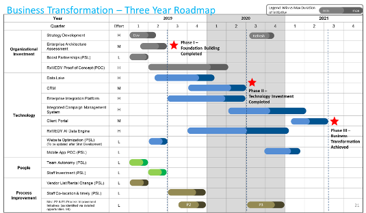 Developed a three-year Business Transformation Roadmap to address most critical gaps